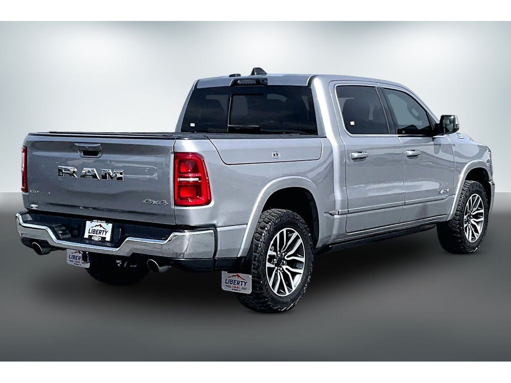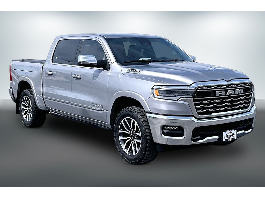 We offer an EXCLUSIVE Warranty Forever on qualifying vehicles. Our bold One Owner 2025 RAM 1500 Limited Crew Cab 4X4 with the Level A Pack in Billet Silver Metallic is a rugged truck that treats you right! Motivated by a Twin-TurboCharged 3.0 Liter High Output Hurricane 6 Cylinder offering 540hp to an 8 Speed Automatic transmission. All that muscle combines with a four-corner air suspension and HD shocks, and this Four Wheel Drive truck achieves nearly 21mpg on the highway. Level up to Limited style with LED lighting, a Mopar spray-on bedliner, Mopar chrome moldings, power running boards, 20-inch wheels, multifunction mirrors, and exclusive RamBox storage.
